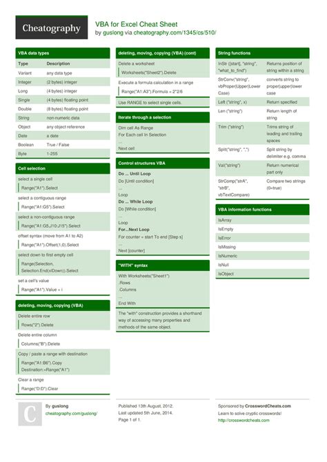 Read Online excel vba syntax cheat sheet Doc Open Library